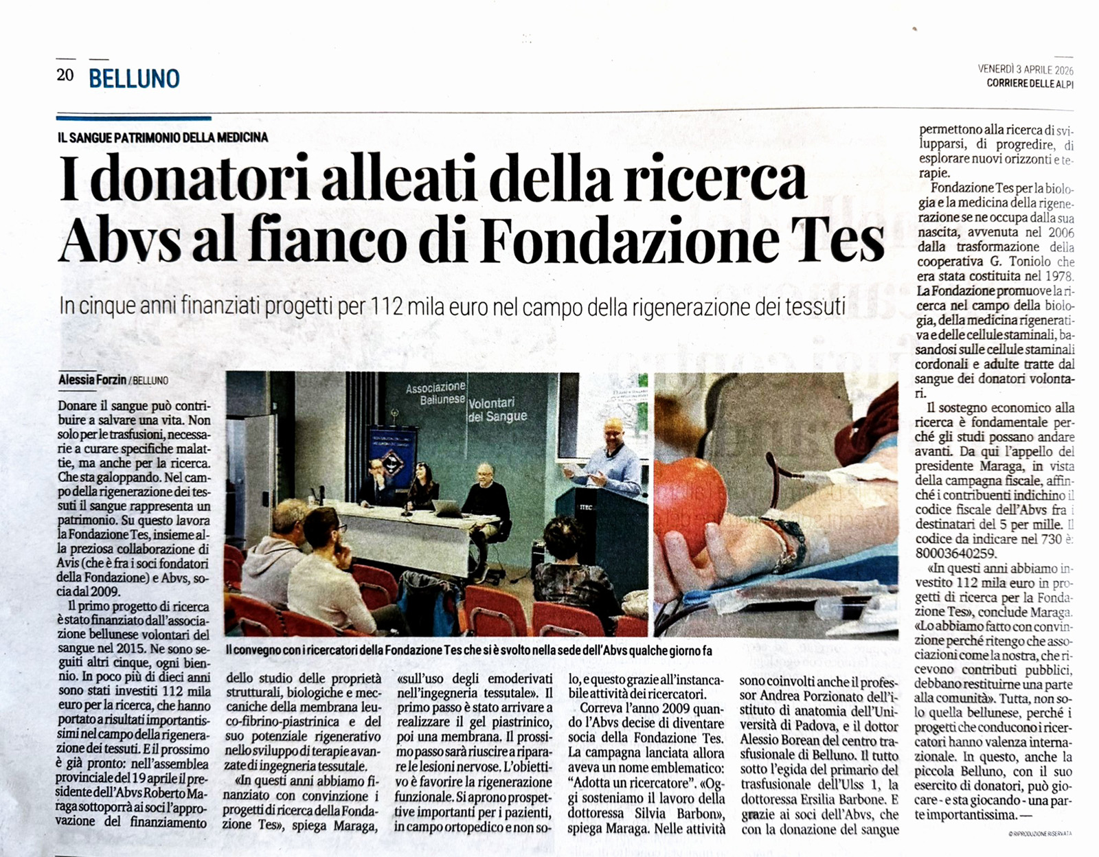 Tes (Tissue Engineering and Signaling), Fondazione per la Biologia e la Medicina della Rigenerazione, promuove la ricerca nel campo della biologia, della medicina rigenerativa e delle cellule staminali